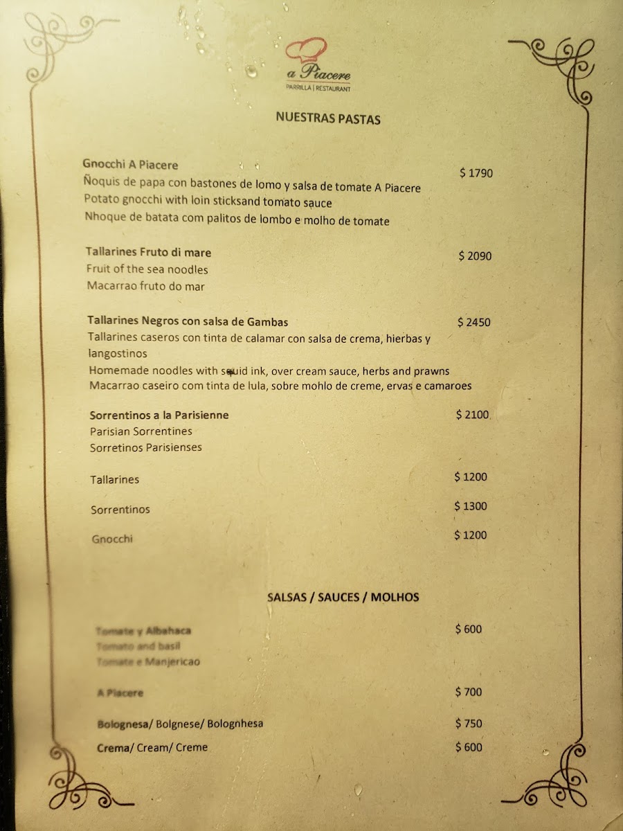 A piacere, located in Puerto Iguazú, Argentina, is a delightful dining destination celebrated for its quality dishes and attentive service. Known for its impressive menu, patrons rave about the flavorful T-bone steak paired with aligot potatoes, showcasing a commitment to culinary excellence. The restaurant's inviting atmosphere and reasonable prices make it a favorite among locals and visitors alike. Guests appreciate the diverse offerings, including delicious sorrentinos and well-prepared sides. With an emphasis on satisfying meals at great value, A piacere stands out as a must-visit spot for anyone craving authentic Argentinian flavors in a warm setting.